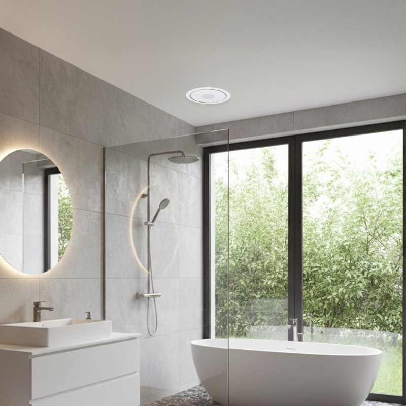 Universal side ducted exhaust with 10W LED Centre light and build in draft stopper.